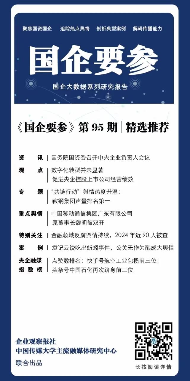 企不雅国资是企业不雅察报社官方微信公众号。《企业不雅察报》是由国务院国资委指令、中国企业矫正与发展参议会驾御掌握的全媒体平台,被国务院国资委认定为“国资国企自有公论平台”,勤快于以专科化、市集化、海外化视角温柔报谈中国企业矫正发展。